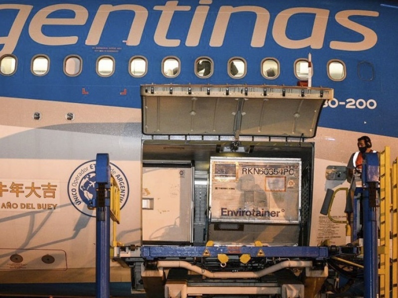 El avión de Aerolíneas Argentinas con una carga de un millón de vacunas Sinopharm contra el coronavirus procedentes de la República Popular China, arribó en la tarde de este jueves al aeropuerto Internacional de Ezeiza, en tanto que la otra aeronave con más dosis de Sputnik V, permanece en Moscú por demoras en la carga y llegará a Buenos Aires en la madrugada del sábado .