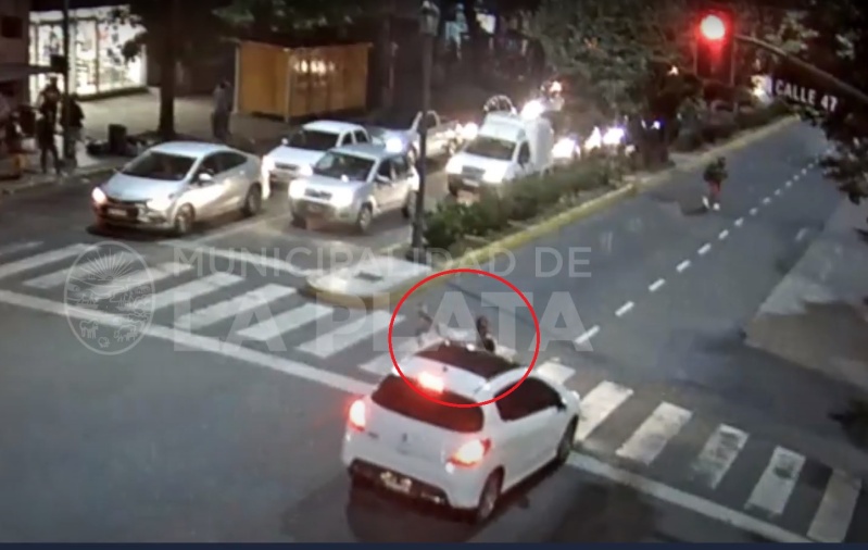 El conductor de un auto marca Peugeot, color blanco, cruzó con el semáforo en rojo y chocó a una ciclista. El siniestro quedó registrado en las cámaras de seguridad de la Municipalidad de La Plata.