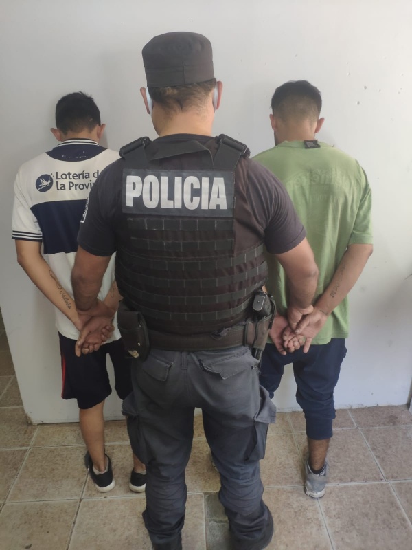 Con efectivos de civil de vigilancia encubierta, llegaron al lugar dos sujetos, de 24 y 29 años, justamente circulando en la playera.