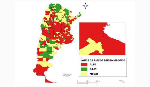 Se toma en cuenta el índice de riesgo epidemiológico por departamento de más de 40.000 habitantes. Hace 14 días eran 85 departamentos, hoy son 151, el aumento es del 87 por ciento.