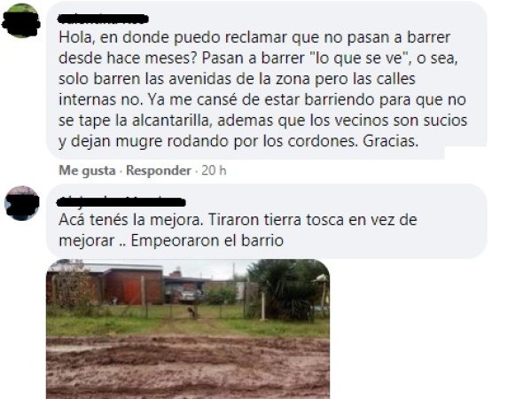 Pero las respuestas de los vecinos no se hicieron esperar. En primer lugar, le pidieron al intendente que haya un destacamento policial en esa zona y que se construya una salita de salud entre otras demandas.