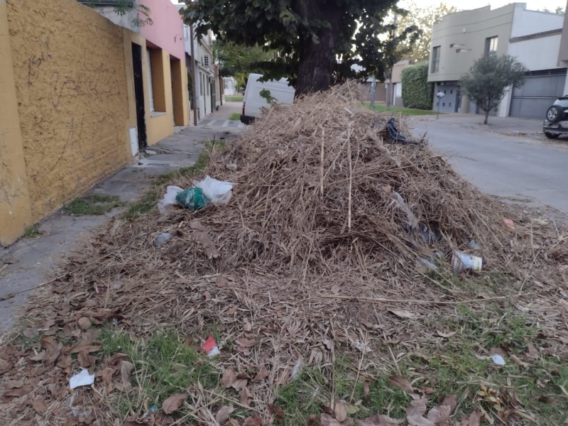 Desde hace varios días, una inmensa montaña de ramas obstruye el paso a los peatones y además se ha transformado en un basural.
