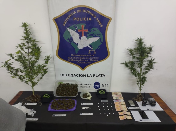 Se secuestraron dos plantas de marihuana, recortes de nylon, envoltorios con cocaína, una balanza y cogollos. Además se llevaron un handy.