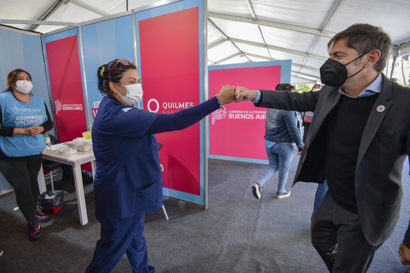 El gobernador de la provincia de Buenos Aires, Axel Kicillof, visitó esta mañana el municipio de Quilmes, donde junto a la intendenta Mayra Mendoza recorrió el operativo de vacunación contra el Covid-19 instalado en el parque de la cervecería Quilmes. Participaron también el jefe de Gabinete, Carlos Bianco; y el viceministro de Salud, Nicolás Kreplak.