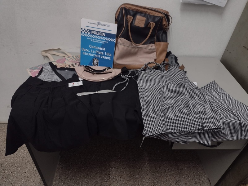 A raíz de un llamado al 911, rápidamente se acercó un móvil del Comando Patrullas La Plata y pudo verificar que en bolsos que llevaban las mujeres, y entre sus ropas, había vestimenta del negocio. Además, se encontró un arma blanca de fabricación casera tipo “faca”.