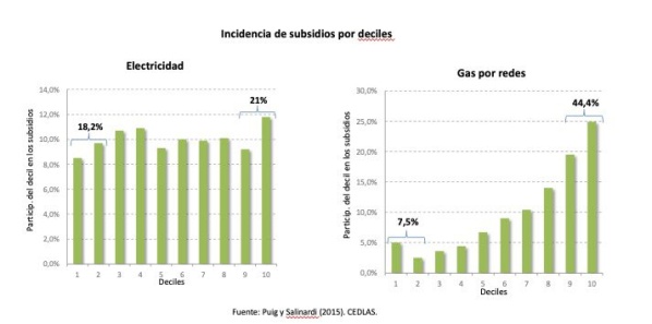 Los datos de incidencia distributiva de los subsidios parecen darle la razón. El peso de los subsidios se hace más fuerte en los déciles más ricos de la sociedad. Sobre todo se manifiesta en el caso del gas donde las familias más pobres ni siquiera reciben ese subsidio ya que cuentan únicamente con garrafa.