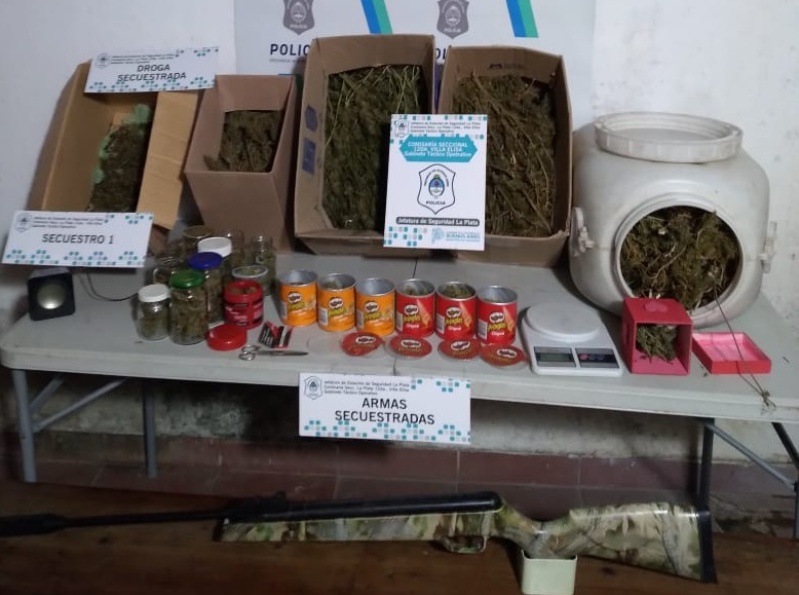 De acuerdo a lo informado, había Cannabis Sativa en las cajas de Pringles, frascos y en una caja de madera. En total, la marihuana incautada es de casi dos kilos y medio. También se secuestró en el lugar una balanza de precisión.