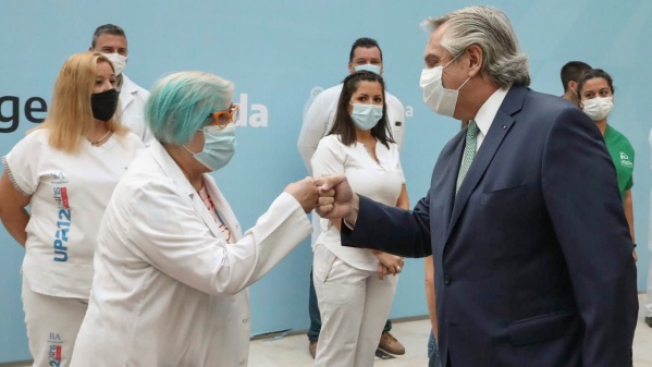 Ahora, destacando “el reconocimiento de la calidad, el empeño y la dedicación con que desarrollan sus tareas”, y teniendo en cuenta que “la situación epidemiológica actual exige nuevamente la aplicación de esta política de incentivo, con el objeto de estimular la labor que deben desarrollar los trabajadores y las trabajadoras que prestan servicios en los diferentes establecimientos de salud, tanto en el sector público como en el privado y de la seguridad social”, Alberto Fernández firmó el decreto con el incentivo al personal abocado “a la atención de casos en el marco de la pandemia”.