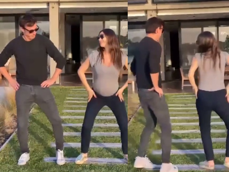 El empresario posteó el video que lo muestra bailando en el jardín de su casa con su esposa, que luce su pancita de embarazada e intenta seguir sus movimientos. "Así nos preparábamos para el video de Delfi. Gracias amor por el esfuerzo en seguir mis pasos", expresó él, con ternura.