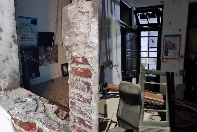 En la madrugada de este martes un fuerte estruendo sacudió a un local partidario de La Cámpora, en la esquina de Beruti y Donado, ciudad de Bahía Blanca. La explosión se dio en la vereda, cuya onda expansiva provocó el estallido de vidrios en departamentos y locales de los alrededores.