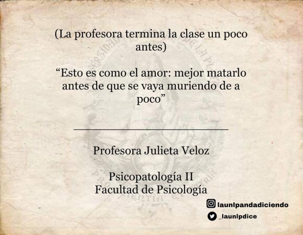 La idea es simple: los alumnos comparten frases o situaciones graciosas que se vivieron en alguna clase. Generalmente son comentarios o chistes que hacen los profesores.