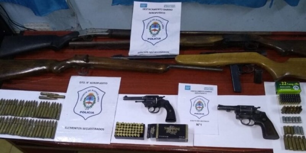 El acusado fue detenido en un domicilio ubicado en la calle 603 entre 3 y 4 tras un operativo a cargo de oficiales del Destacamento Barrio Aeropuerto, con la colaboración de personal de la Comisaría 16° y del Comando de Patrullas. En poder del sujeto, las autoridades incautaron un rifle calibre 22, una carabina, dos escopetas, un revólver calibre 22 y otro calibre 38 y municiones de diverso tipo.