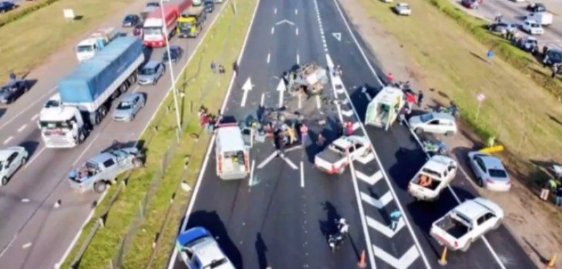 Hasta el momento se sabe que la víctima fatal fue un hombre que iba en moto por la mano con sentido a Buenos Aires, que quedó en medio del choque múltiple entre una Toyota Hilux, una camioneta Mercedes Benz, un Renault Speedway, un Ford Fiesta y dos vehículos más, informó el periodista Daniel Trilla en el canal Crónica.