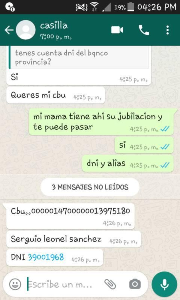 Y explicó: "Ellos después publican como que venden algo, y te piden que les deposites la seña en el CVU de esa tarjeta que sacaron a tu nombre sin tu consentimiento y estafan en tu nombre, a vos te denuncian y ni enterada. Luego con esa tarjeta sacan la plata del cajero".