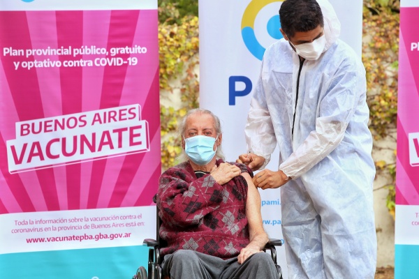 En el marco del programa Buenos Aires Vacunate, la inoculación de adultos mayores se realizó de forma articulada con el PAMI en 2.355 hogares. De esta forma, se aplicaron alrededor de 83.600 vacunas de los dos componentes y se inmunizaron más de 60 mil personas.
