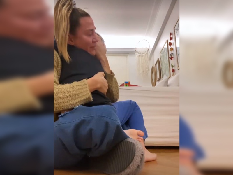 Sensibilizada y sin contener las lágrimas de emoción y de orgullo, Jimena llamó a Momo, le dio un fuerte abrazo y le agradeció por tan hermosa sorpresa.