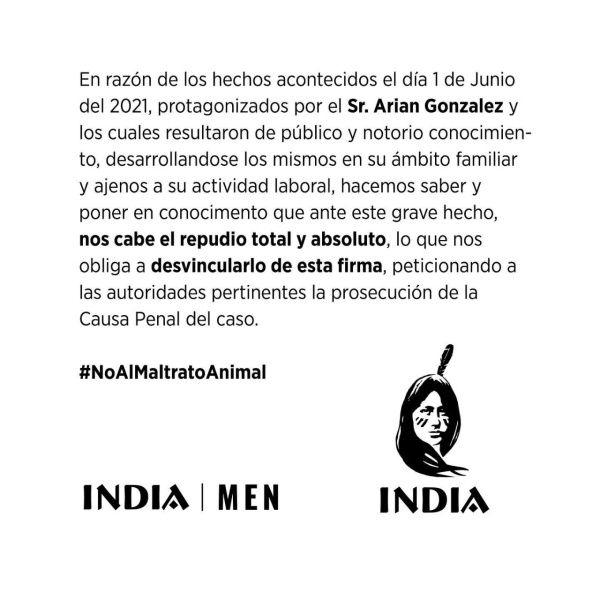 La marca de indumentaria "India", donde el maltratador se desempeñaba como empleado, decidió "desvincularlo de la firrma". Así lo indicaron desde las redes oficiales, y lo que produjo que muchas personas festejaran la decisión.