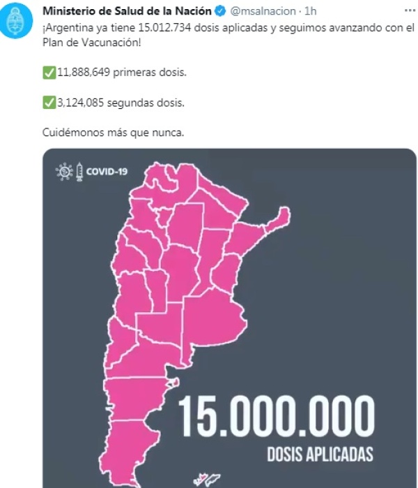 Avanza la campaña de vacunación: más de 15 millones de dosis aplicadas en el país