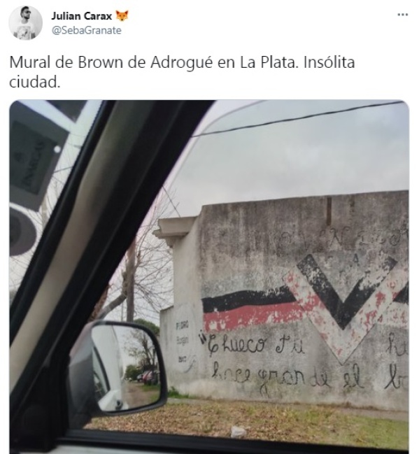 Un mural de Brown de Adrogué en Tolosa generaba muchos interrogantes. ¿Por qué un club del Conurbano tenía su propia pintada en La Plata?