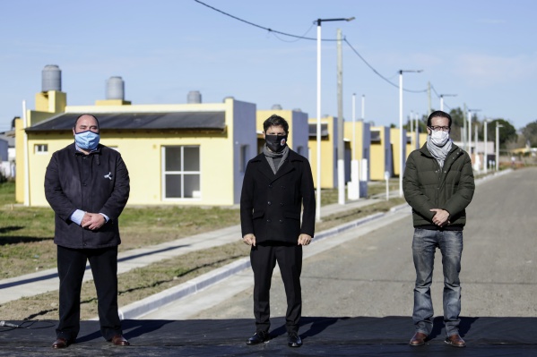 El gobernador de la provincia de Buenos Aires, Axel Kicillof, visitó este viernes la localidad de Ranchos, en el municipio de General Paz, donde encabezó el acto de entrega de 53 viviendas junto al intendente local, Juan Manuel Álvarez, y el ministro de Infraestructura y Servicios Públicos, Agustín Simone. Participó también el jefe de Gabinete, Carlos Bianco.