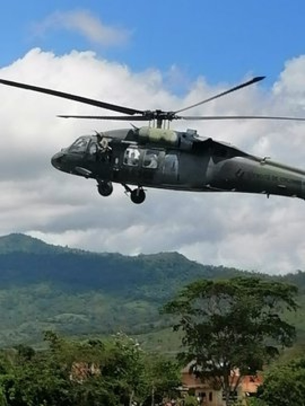 La máquina en la que viajaban Duque y los ministros Molano y Palacios es una Black Hawk blindada y logró, pese al ataque, un aterrizaje normal.