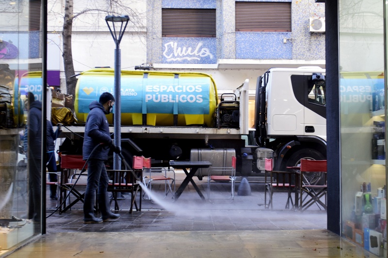 En el marco de las acciones de prevención del coronavirus y con la premisa de mantener la higiene de los espacios públicos de la ciudad, la Municipalidad de La Plata avanza con el cronograma de hidrolavado y desinfección en las veredas de los principales centros comerciales y gastronómicos. Profundizan las tareas de cara al fin de semana.
