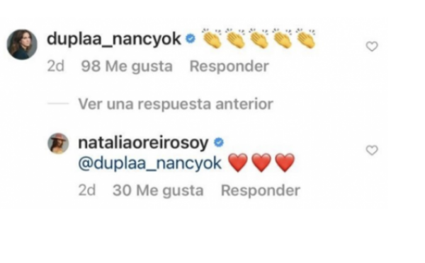Uno de los halagos vino de parte de Nancy Dupláa, la actual pareja de su ex novio, Pablo Echarri, con quien Natalia estuvo en pareja desde 1994 hasta el 2000.
