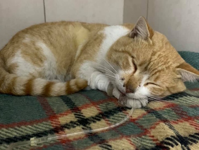 El gato se encuentra en la Clínica Veterinaria Platense, en calle Centenario 509 y 510. Pide colaboración y difusión del caso.