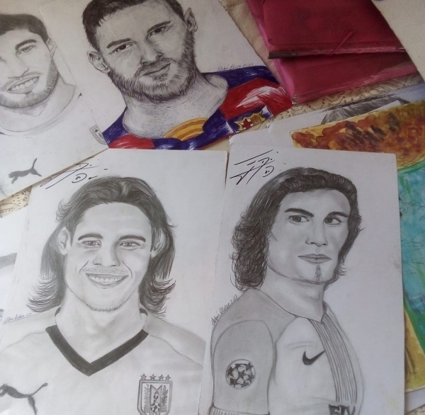 Y agregó: “Hago dibujos, retratos para los jugadores. Por ejemplo, me ha firmado Cavani y Luis Suárez. Pero Messi me inspira cómo juega para dibujar”.