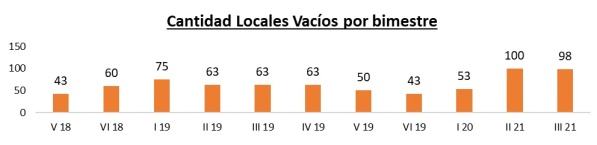 Sin embargo, estos 98 locales vacío casi duplican a los datos previos a la pandemia: en el primer bimestre del 2020, la cantidad de locales sin utilizar (ya sea porque están en venta, en alquiler o cerrados) era de 53.