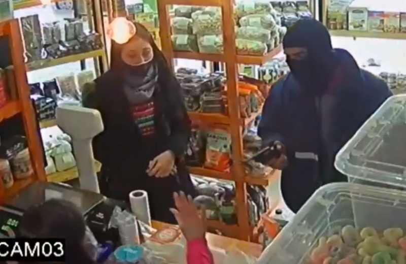 Un motochorro ingresó a punta de pistola al local, amenazó a los dueños y una clienta y escapó con dinero en efectivo. El delincuente no dudó un segundo en intimidar a las víctimas, y les apuntó con el revolver.