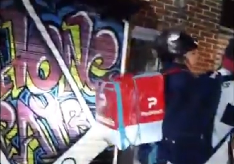 Ahora, repartidores de la aplicación se reunieron en la puerta de donde ocurrió el hecho exigiendo que la mujer salga y pague las consecuencias.