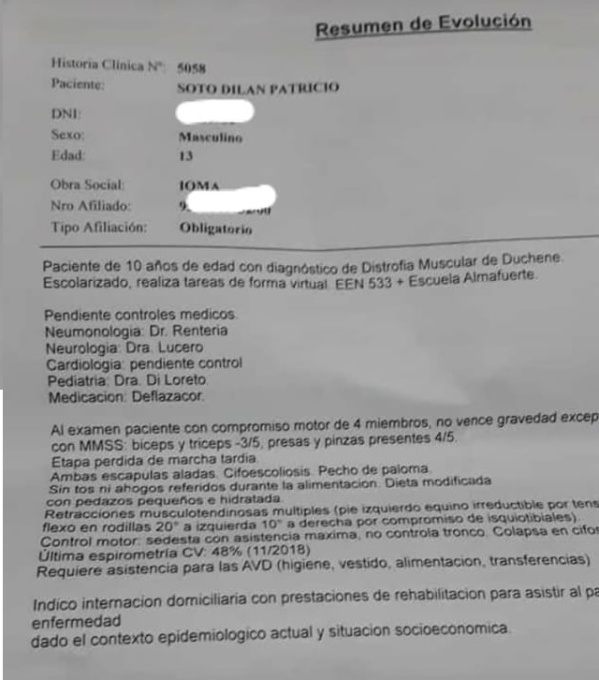 Una familia platense necesita ayuda: Dylan tiene 13 años y padece Distrofia Muscular de Duchenne. Son del barrio San Carlos.