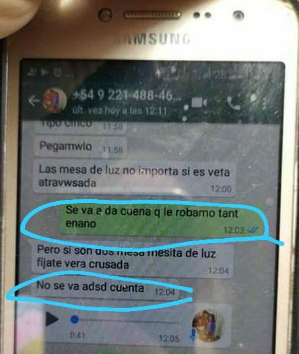 “Se va a dar cuenta que le robamos tanto enano”, le escribía Francisco, cómplice de Tinedo, en uno de los chats que la mujer accedió como prueba.