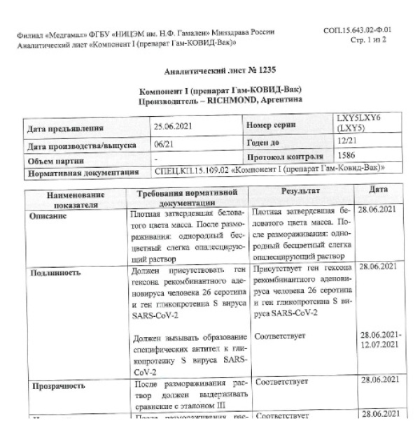 Según detalló, se trata de un primer lote de 140.625 dosis del componente 1 de la vacuna, mientras que el laboratorio ya produjo hasta ahora aproximadamente 1,3 millones de dosis del componente 1 y 1.010.000 dosis del componente 2 que se irán autorizando en los próximos días.