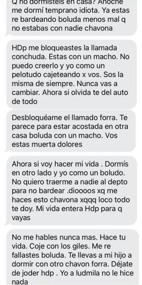 Y siguió: “Yo te dejé a vos antes de enterarme esto que le hiciste vivir a mi hermana. Vos estás mal de la cabeza pervertido tengo mensajes donde me insultas tratándome de puta, que estoy con un macho, que esto que el otro”.