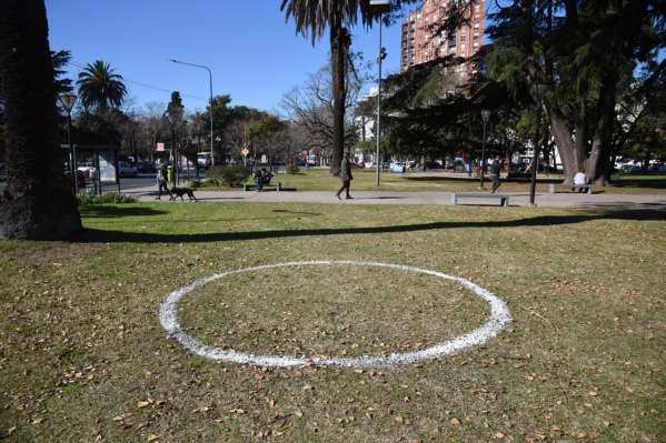 Conjuntamente, se demarcaron más de 15 parques y plazas para que cada grupo utilice su propia “burbuja”. Los mismos, son círculos de 1,5 metros de diámetro sobre el pasto en los espacios verdes más transitados de la ciudad.