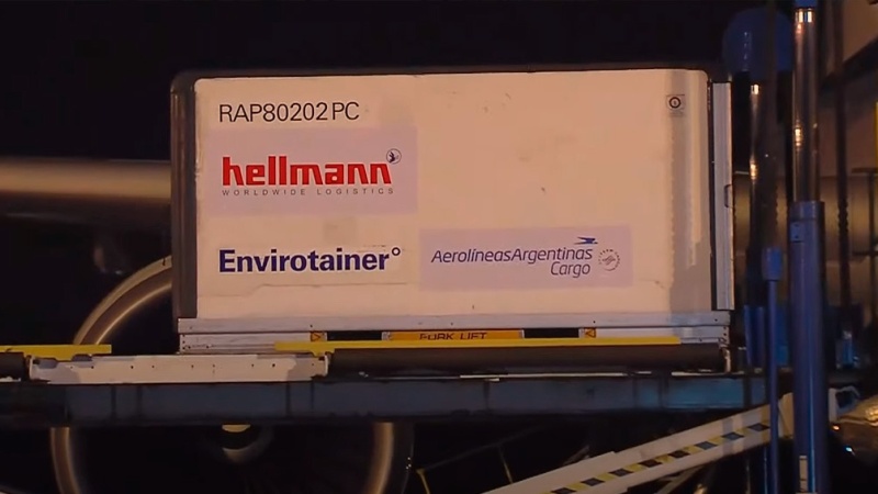 El Airbus 330-200 aterrizó en el aeropuerto internacional de Ezeiza procedente de Beijing tras una escala intermedia en Madrid, con 768.000 dosis de la vacuna fabricada en China.