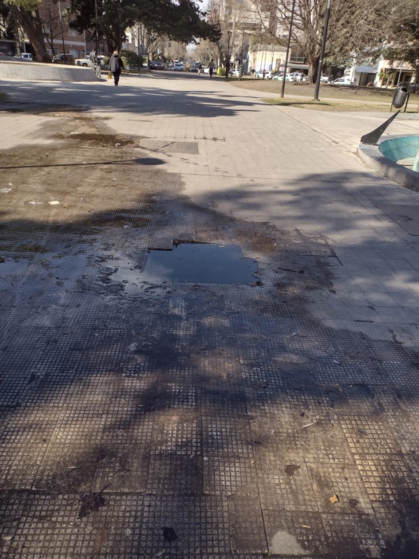 Asimismo expresó "faltan varias baldosas y cuando llueve se hace una laguna que puede provocar un accidente".