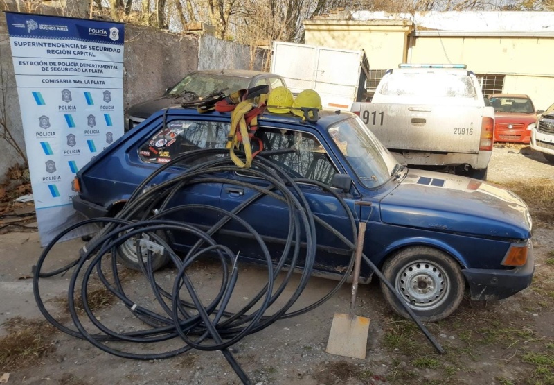 Un sujeto de 46 años y su hijo de 19, que se hacían pasar por empleados de una empresa privada de mantenimiento de espacios públicos para robar cables de todo tipo, fueron detenidos en las últimas horas en La Plata tras ser descubiertos in fraganti por efectivos de la policía de la provincia de Buenos Aires.