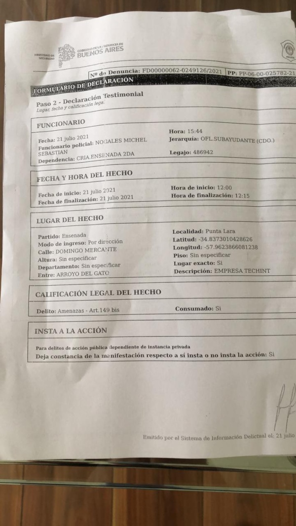 “Cuando estaba terminando de hacer un papeleo, se acercó uno de los supuestos delegados de la Termoeléctrica, que andan con Ivan Tobar (Alejandro Wadía) y lo amenazaron de muerte a él y su familia. Que no vuelva a concurrir a la obra porque lo mataban, le dijeron”, comentó una persona allegada a Benítez.