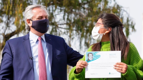 Al anunciar la ampliación de las becas "Manuel Belgrano", destinadas a estudiantes de universidades nacionales y provinciales de carreras estratégicas, en un acto que se realizó en la Universidad Nacional Arturo Jauretche (UNAJ), en la ciudad bonaerense de Florencio Varela, Fernández dijo: "El futuro no está en la riqueza bajo la tierra, está en la inteligencia".