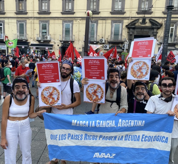Oscar Soria, director de campaña de Avaaz, indicó que "la gente tiene hambre de esperanza y el G20 debe cumplir. Aquí, en el lugar de nacimiento de la pizza, hacemos un llamado al G20 para que entregue un comunicado sólido con acciones concretas para construir una recuperación justa y ecológica para todos".