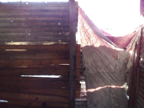 Ahora están pidiendo donaciones de chapas. Buscan construir un baño a Rosita ya que actualmente hace sus necesidades en un tacho y lo tira en el sanjón que tiene detrás de su casa.