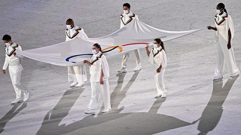 Pareto, de 35 años y médica traumatóloga, ingresó al recinto con la bandera blanca que tiene estampados los cinco anillos olímpicos acompañada por cinco atletas con historia en la competencia, entregando en el centro de escenario la enseña a un grupo de seis trabajadores de la salud.