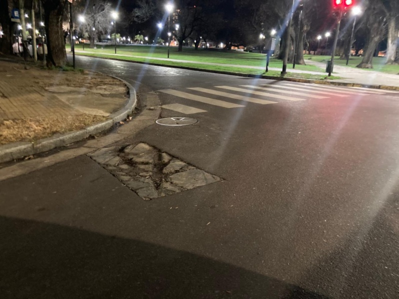 Esta vez, su enojo fue por un pozo en la esquina, sobre calle 12. "¿No se dan cuenta que eso puede generar que alguien se lo coma? Un ciclista, alguien cruzando la calle, un auto que no lo ve. Descuidan la ciudad, no les importa nada", cerró.