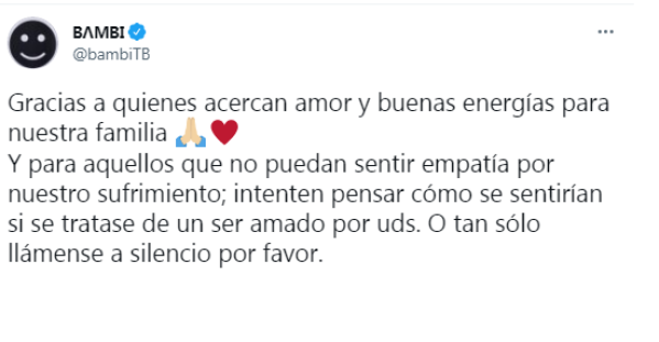 Y agregó: "Y para aquellos que no puedan sentir empatía por nuestro sufrimiento; intenten pensar cómo se sentirían si se tratase de un ser amado por uds. O tan sólo llámense a silencio por favor".