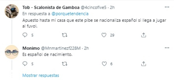 En cambio, otros usuarios prefirieron ser cautos con su futuro. Teniendo en cuenta que Mateo en la casa lleva la contra como por ejemplo cuando Leo en una entervista contó que "hinchaba por el Real Madrid", empezaron a temer de que su talento se haga realidad y decida representar a España, su país de nacimiento.
