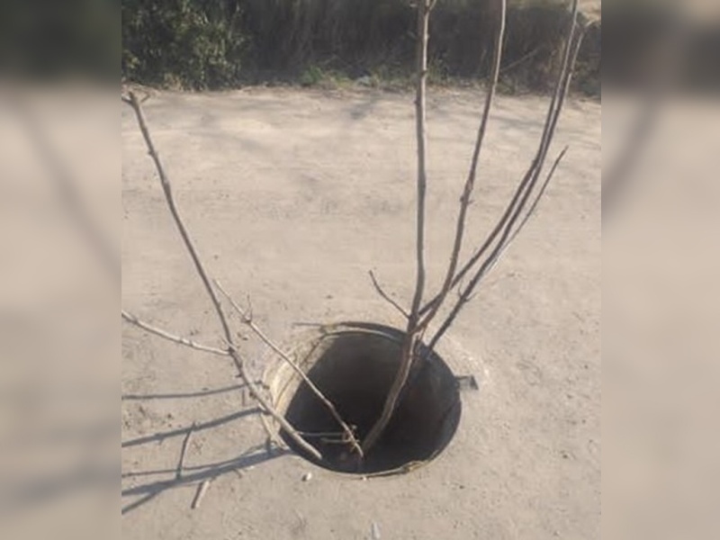 Como faltaba señalización, los vecinos pusieron ramas para advertir por el peligroso hueco pero el chico no lo vio y se clavó uno de los palos luego de tropezar.