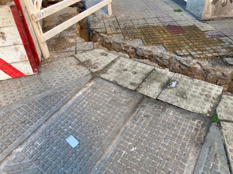 Es justo la esquina de 8 y 55, donde la vereda está levantada y el lugar para pasar con silla de ruedas o carritos, quedó completamente inhabilitado.